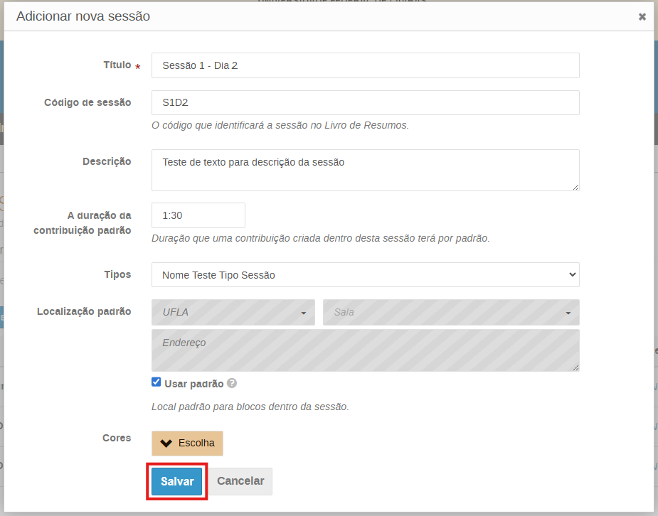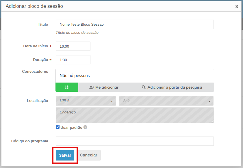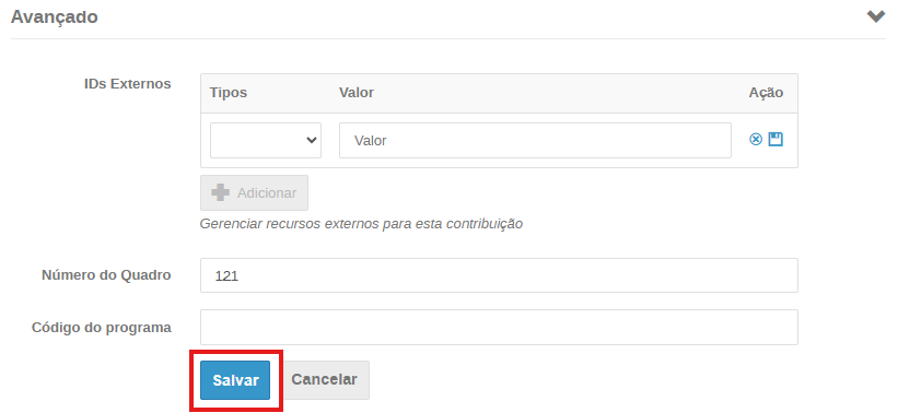 22. Preencha as informações necessárias e clique em “Salvar”: