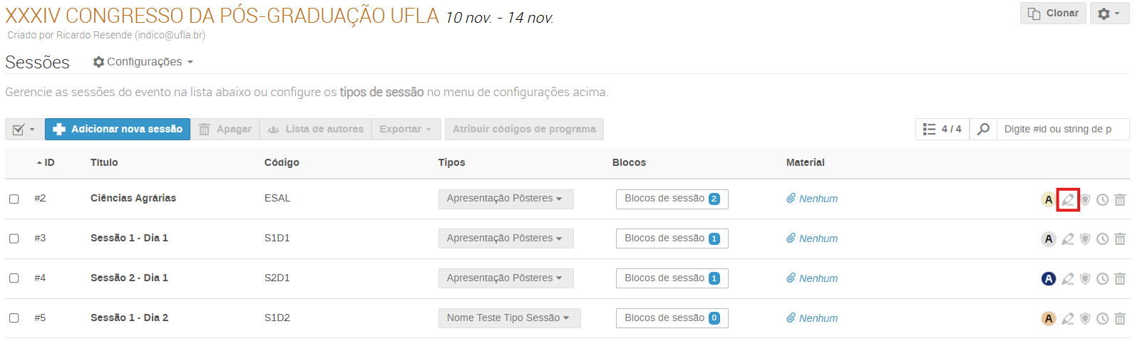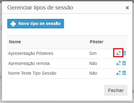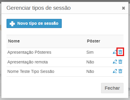 9. Para excluir um tipo de sessão existe, clique no ícone