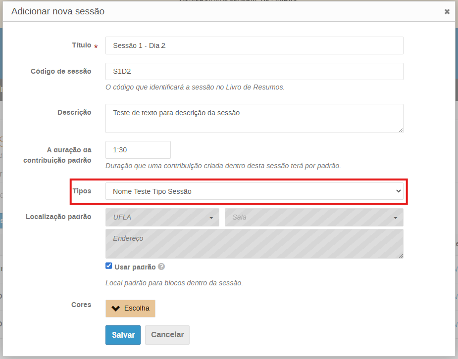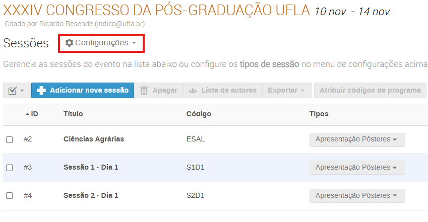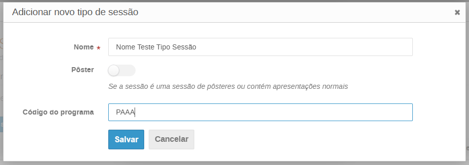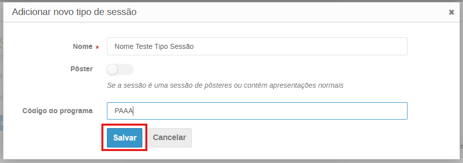 Se a sessão é destinada à exposição de pôsteres, deixe a opção “Pôster” ativada.
