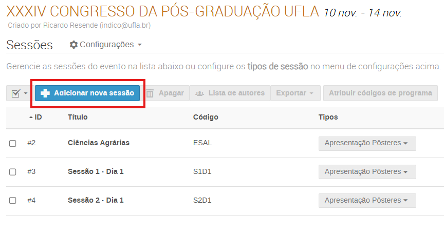 11. Para criar uma sessão, clique em “Adicionar nova sessão”: