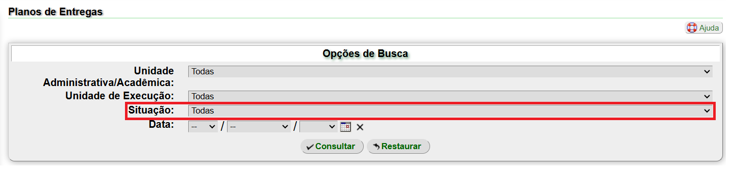 Prazo de avaliação expirado: exibe os Planos de Trabalho que já foram aprovados pela chefia, mas não foram avaliados dentro do prazo.