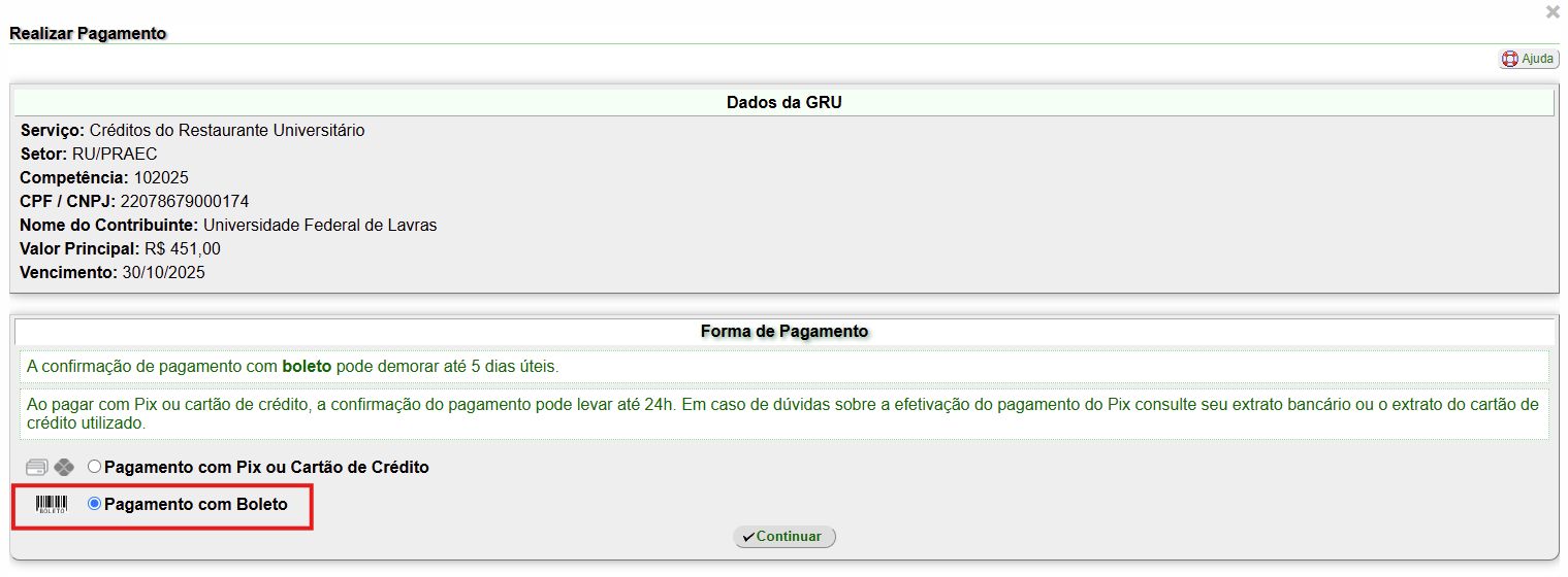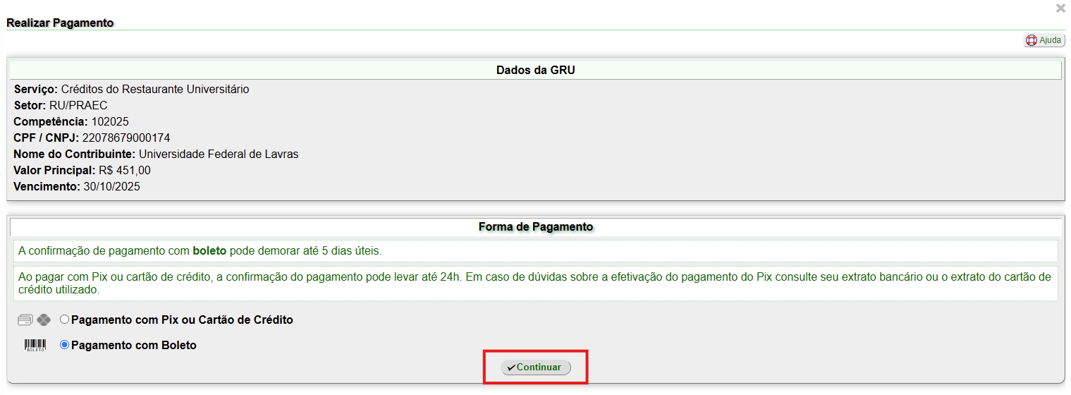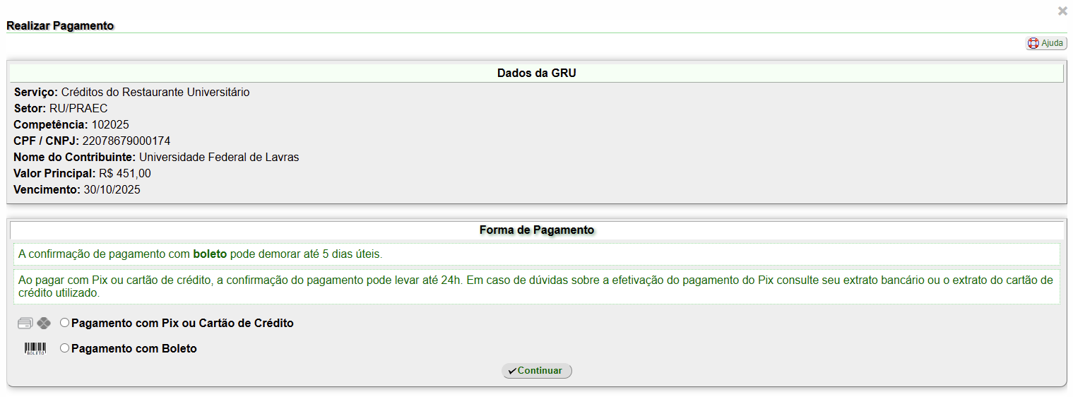 Atualmente, o pagamento tem sido realizado no mesmo dia em que a GRU é gerada.